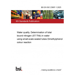 Ensure the highest standards of water quality with the BS EN ISO 23697-1:2025 standard. This comprehensive document provides a detailed methodology for the determination of total bound nitrogen (ST-TNb) in water using small-scale sealed tubes and the Dimethylphenol colour reaction. Released on December 19, 2025, this standard is an essential resource for professionals in the field of water quality analysis.
