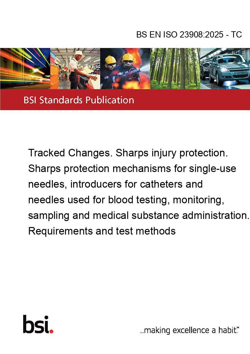 This standard BS EN ISO 23908:2025 - TC Tracked Changes. Sharps injury protection. Sharps protection mechanisms for single-use needles, introducers for catheters and needles used for blood testing, monitoring, sampling and medical substance administration. Requirements and test methods is classified in these ICS categories: