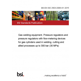 This standard BS EN ISO 2503:2009+A1:2015 Gas welding equipment. Pressure regulators and pressure regulators with flow-metering devices for gas cylinders used in welding, cutting and allied processes up to 300 bar (30 MPa) is classified in these ICS categories: