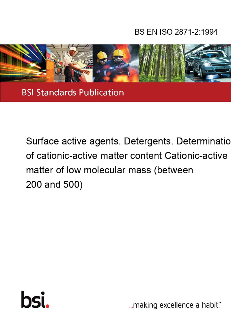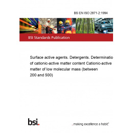 This standard BS EN ISO 2871-2:1994 Surface active agents. Detergents. Determination of cationic-active matter content is classified in these ICS categories: