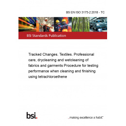 This standard BS EN ISO 3175-2:2018 - TC Tracked Changes. Textiles. Professional care, drycleaning and wetcleaning of fabrics and garments is classified in these ICS categories: