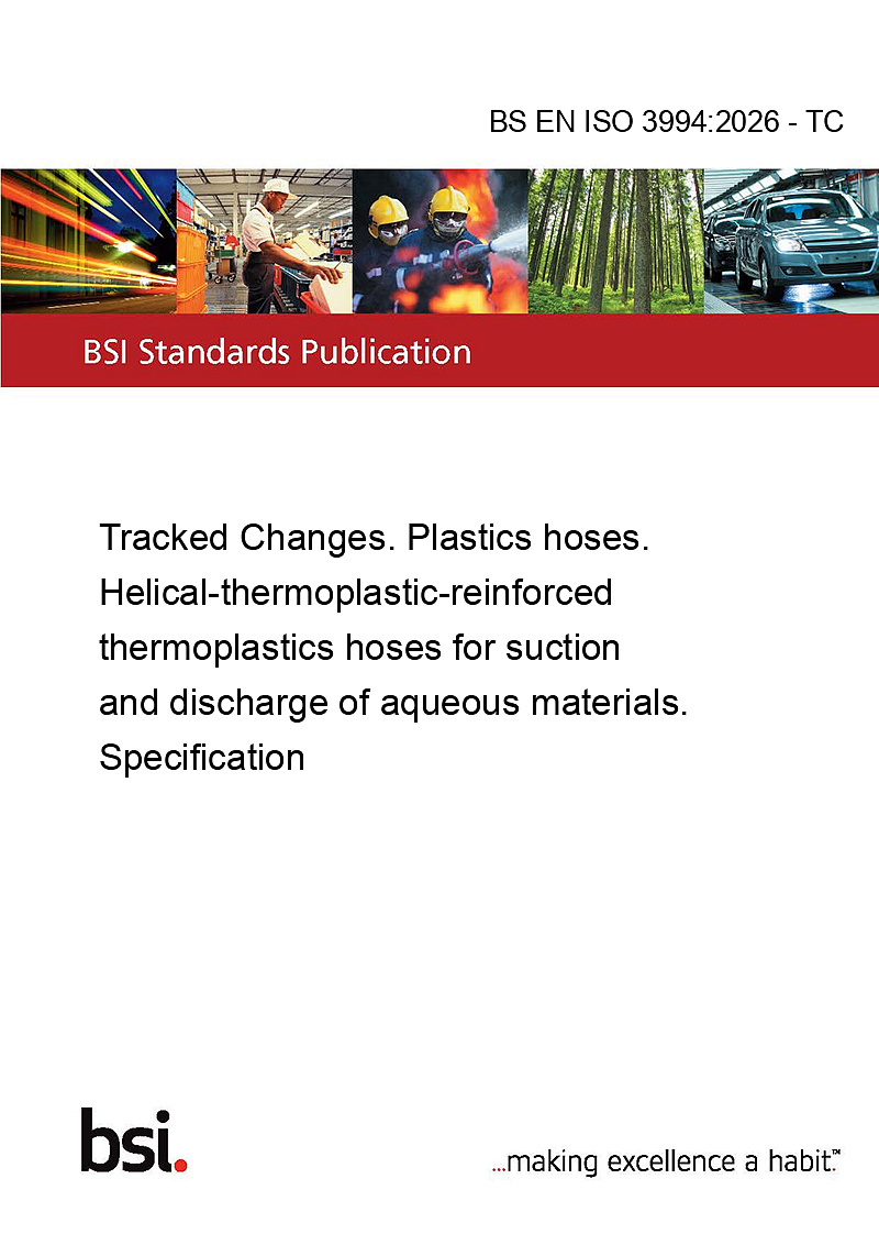 This standard BS EN ISO 3994:2026 - TC Tracked Changes. Plastics hoses. Helical-thermoplastic-reinforced thermoplastics hoses for suction and discharge of aqueous materials. Specification is classified in these ICS categories: