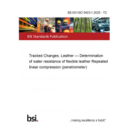 This standard BS EN ISO 5403-1:2025 - TC Tracked Changes. Leather — Determination of water resistance of flexible leather is classified in these ICS categories: