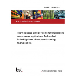 This standard BS ISO 13259:2010 Thermoplastics piping systems for underground non-pressure applications. Test method for leaktightness of elastomeric sealing ring type joints is classified in these ICS categories: