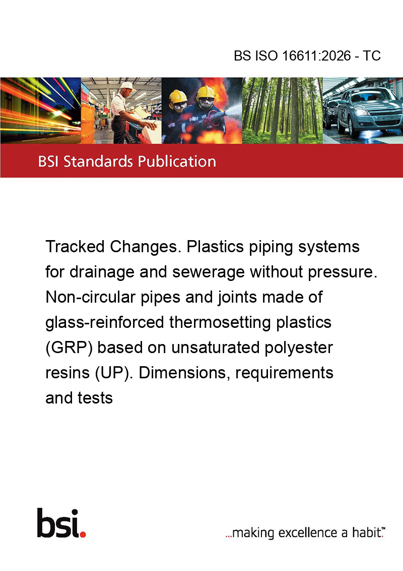 This standard BS ISO 16611:2026 - TC Tracked Changes. Plastics piping systems for drainage and sewerage without pressure. Non-circular pipes and joints made of glass-reinforced thermosetting plastics (GRP) based on unsaturated polyester resins (UP). Dimensions, requirements and tests is classified in these ICS categories: