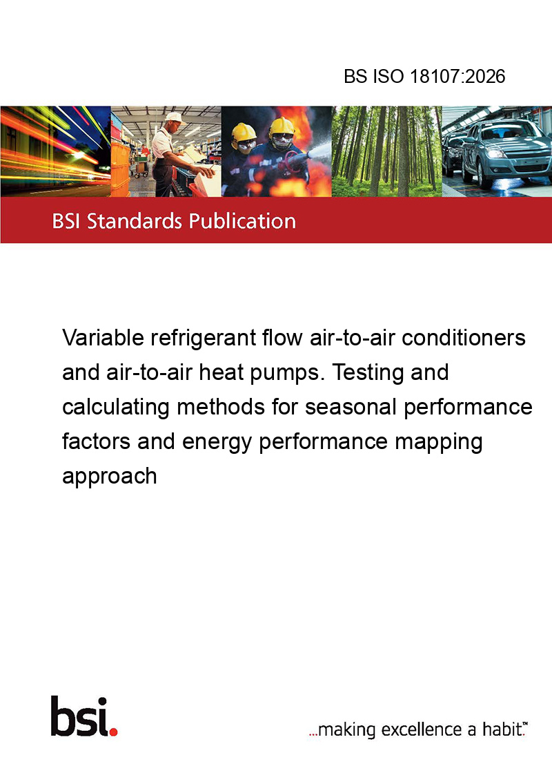 This standard BS ISO 18107:2026 Variable refrigerant flow air-to-air conditioners and air-to-air heat pumps. Testing and calculating methods for seasonal performance factors and energy performance mapping approach is classified in these ICS categories: