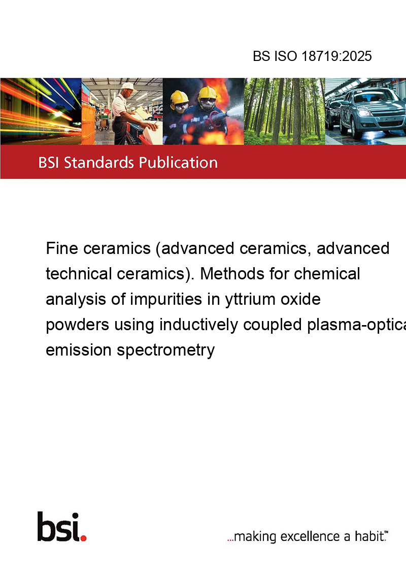 This standard BS ISO 18719:2025 Fine ceramics (advanced ceramics, advanced technical ceramics). Methods for chemical analysis of impurities in yttrium oxide powders using inductively coupled plasma-optical emission spectrometry is classified in these ICS categories: