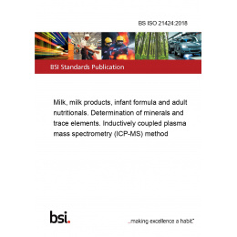 This standard BS ISO 21424:2018 Milk, milk products, infant formula and adult nutritionals. Determination of minerals and trace elements. Inductively coupled plasma mass spectrometry (ICP-MS) method is classified in these ICS categories: