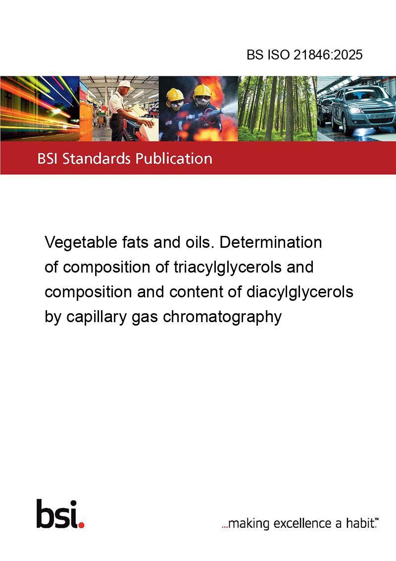 Introducing the BS ISO 21846:2025, a comprehensive standard that provides a detailed methodology for the determination of the composition of triacylglycerols and the composition and content of diacylglycerols in vegetable fats and oils using capillary gas chromatography. This standard is an essential resource for professionals in the food and oil industries, ensuring precision and consistency in the analysis of vegetable fats and oils.