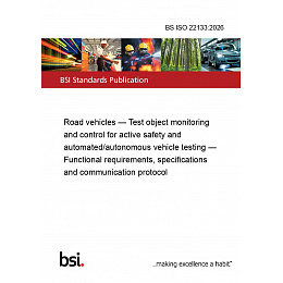 This standard BS ISO 22133:2026 Road vehicles — Test object monitoring and control for active safety and automated/autonomous vehicle testing — Functional requirements, specifications and communication protocol is classified in these ICS categories:
