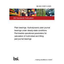 This standard BS ISO 31657-4:2025 Plain bearings. Hydrodynamic plain journal bearings under steady-state conditions is classified in these ICS categories: