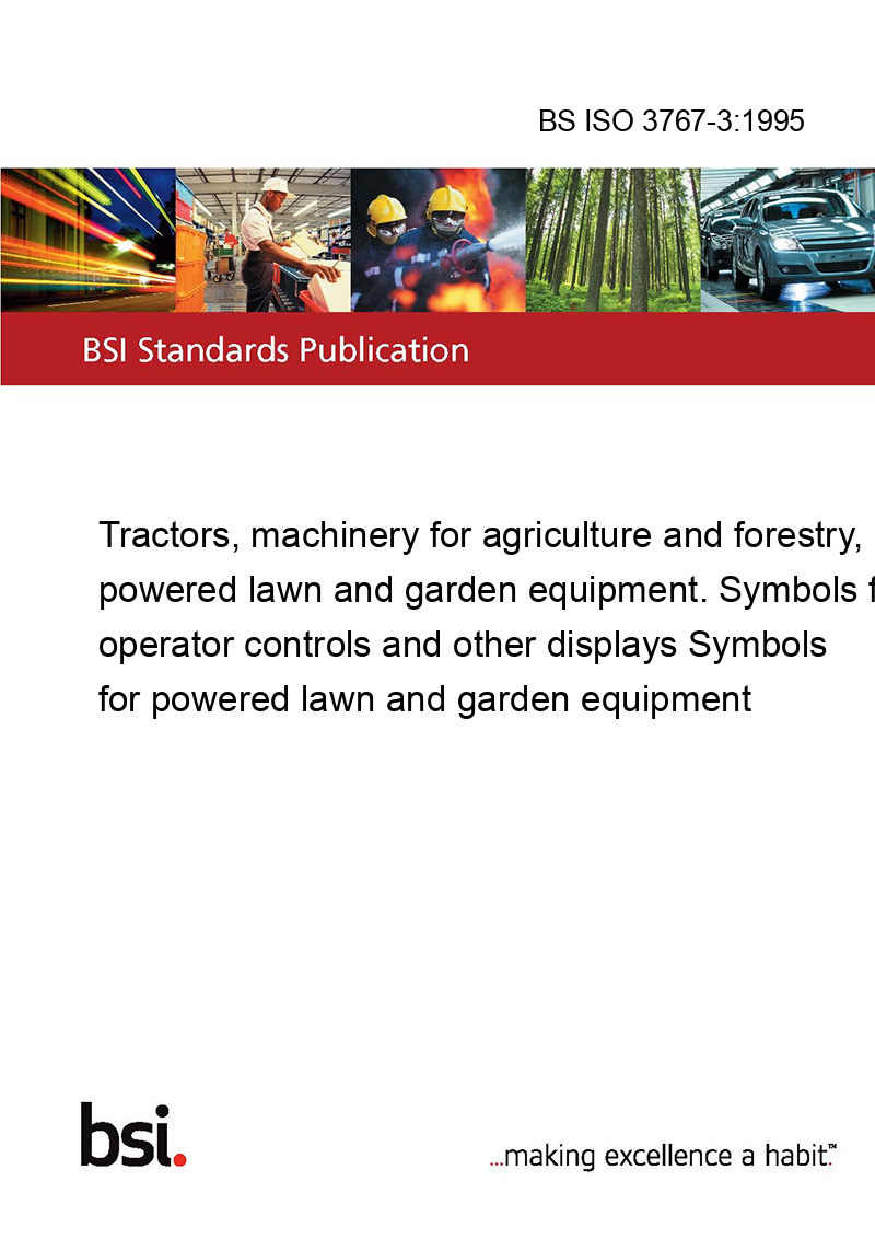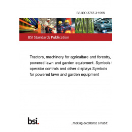 This standard BS ISO 3767-3:1995 Tractors, machinery for agriculture and forestry, powered lawn and garden equipment. Symbols for operator controls and other displays is classified in these ICS categories: