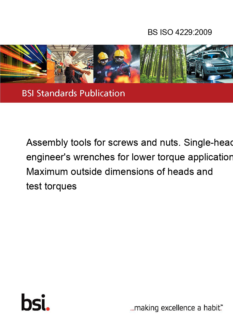 This standard BS ISO 4229:2009 Assembly tools for screws and nuts. Single-head engineer's wrenches for lower torque applications. Maximum outside dimensions of heads and test torques is classified in these ICS categories: