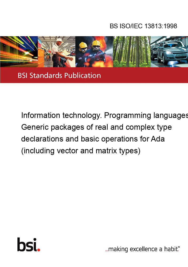 This standard BS ISO/IEC 13813:1998 Information technology. Programming languages. Generic packages of real and complex type declarations and basic operations for Ada (including vector and matrix types) is classified in these ICS categories: