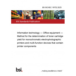 This standard BS ISO/IEC 19752:2025 Information technology — Office equipment — Method for the determination of toner cartridge yield for monochromatic electrophotographic printers and multi-function devices that contain printer components is classified in these ICS categories: