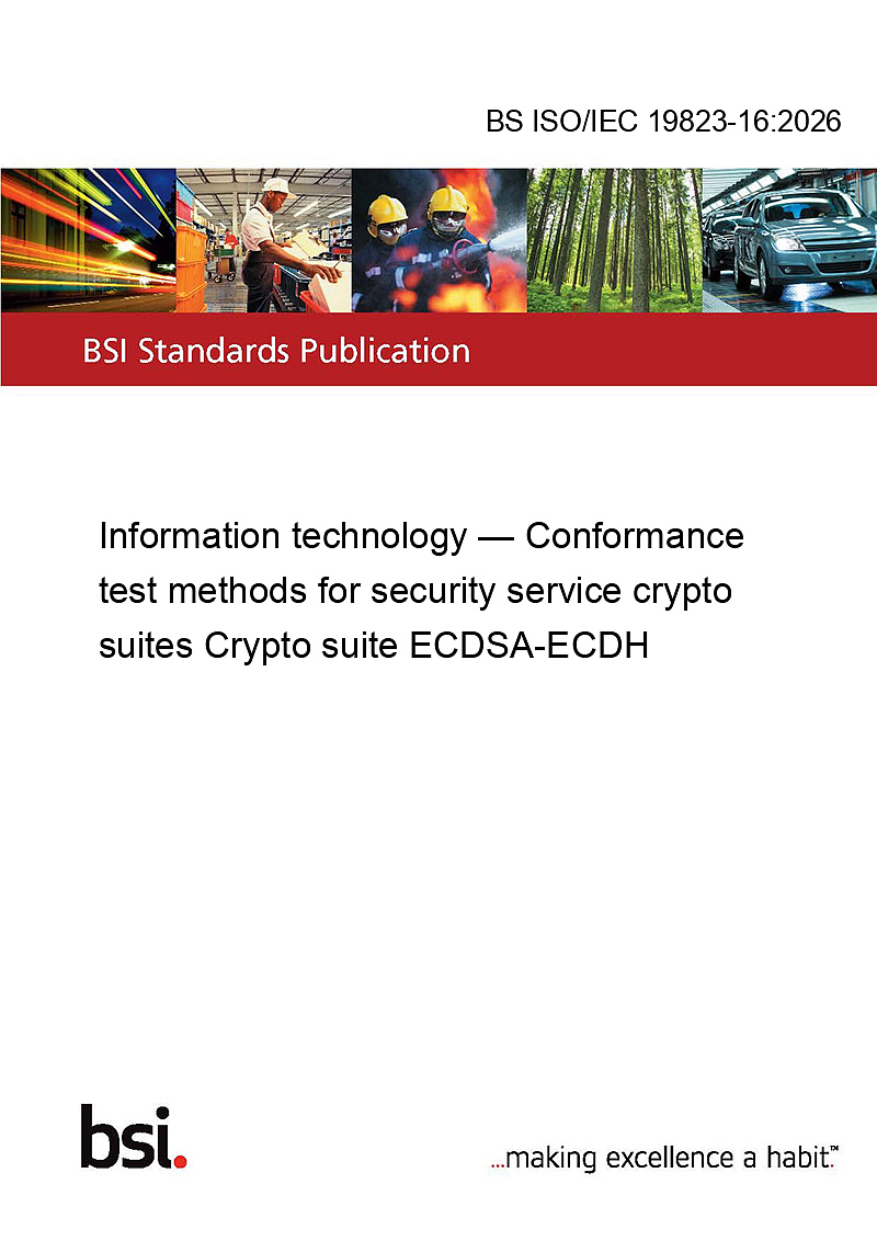 Spanning 30 pages, the BS ISO/IEC 19823-16:2026 standard provides detailed guidance on the conformance test methods for ECDSA-ECDH crypto suites. It covers a wide range of topics, including: