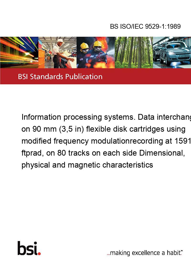 This standard BS ISO/IEC 9529-1:1989 Information processing systems. Data interchange on 90 mm (3,5 in) flexible disk cartridges using modified frequency modulationrecording at 15916 ftprad, on 80 tracks on each side is classified in these ICS categories: