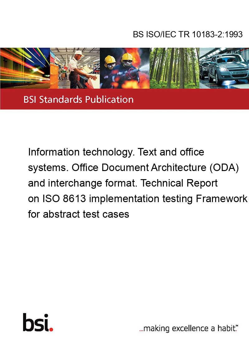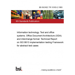 Information technology. Text and office systems. Office Document Architecture (ODA) and interchange format. Technical Report on ISO 8613 implementation testing Framework for abstract test cases