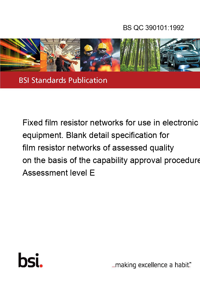 This standard BS QC 390101:1992 Fixed film resistor networks for use in electronic equipment. Blank detail specification for film resistor networks of assessed quality on the basis of the capability approval procedure. Assessment level E is classified in these ICS categories: