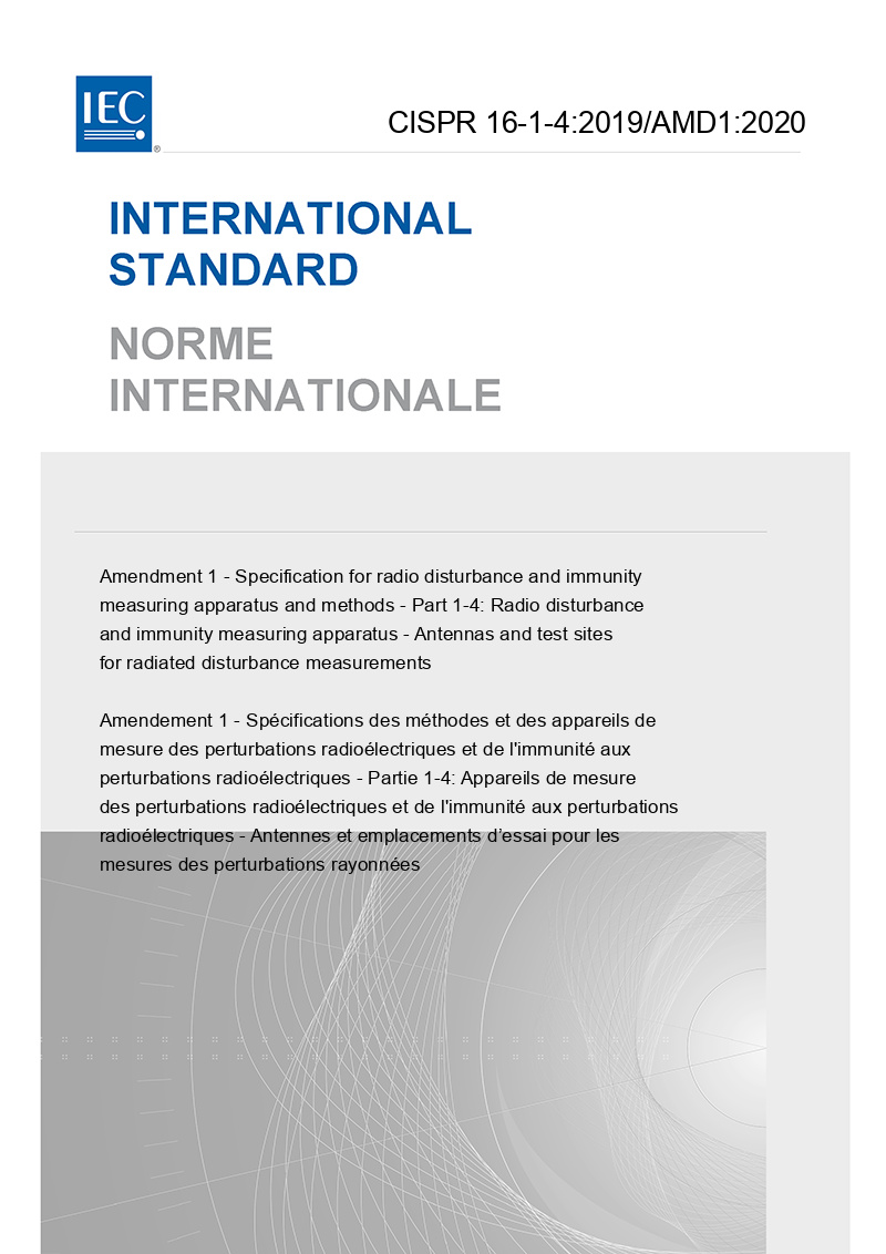 >IEC Standards>CISPR 16-1-4:2019/AMD1:2020 - Amendment 1 - Specification for radio disturbance and immunity measuring apparatus and methods - Part 1-4: Radio disturbance and immunity measuring apparatus - Antennas and test sites for radiated disturbance measurements