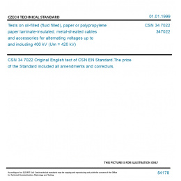 CSN 34 7022 Tests on oil-filled (fluid filled), paper or polypropylene paper laminate-insulated. metal-sheated cables and accessories for alternating voltages up to and including 400 kV (Um = 420 kV)