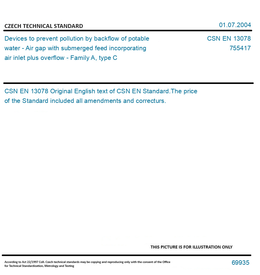 Devices to prevent pollution by backflow of potable water - Air gap with submerged feed incorporating air inlet plus overflow - Family A, type C