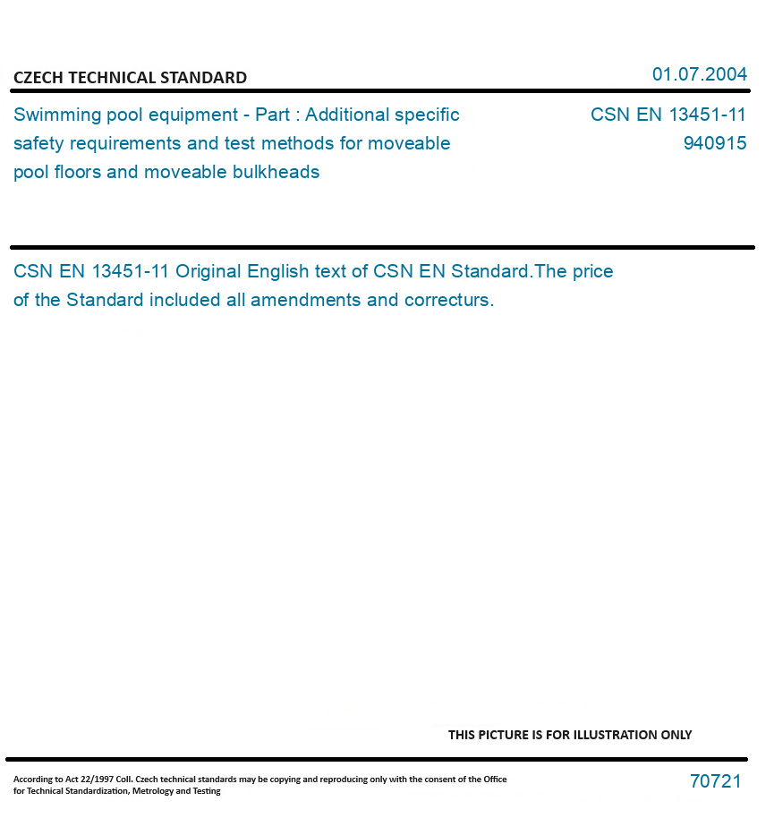 Swimming pool equipment - Part : Additional specific safety requirements and test methods for moveable pool floors and moveable bulkheads