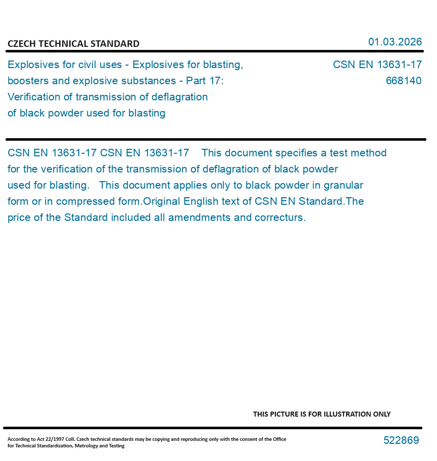 Explosives for civil uses - Explosives for blasting, boosters and explosive substances - Part 17: Verification of transmission of deflagration of black powder used for blasting