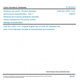 >CSN Standards>74 PARTS OF BUILDINGS>7460 Windows, doors, shutters>CSN EN 14351-1+A1 - Windows and doors - Product standard, performance characteristics - Part 1: Windows and external pedestrian doorsets without resistance to fire and/or smoke leakage characteristics