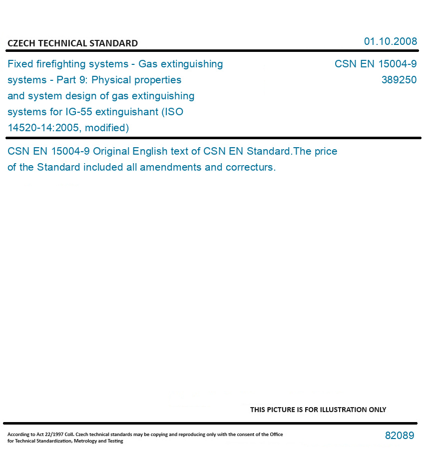 Fixed firefighting systems - Gas extinguishing systems - Part 9: Physical properties and system design of gas extinguishing systems for IG-55 extinguishant (ISO 14520-14:2005, modified)