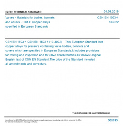 Valves - Materials for bodies, bonnets and covers - Part 4: Copper alloys specified in European Standards
