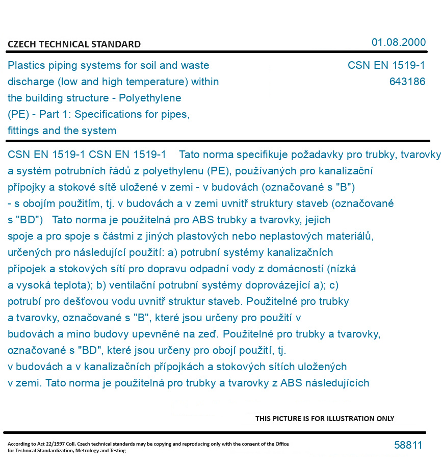 Plastics piping systems for soil and waste discharge (low and high temperature) within the building structure - Polyethylene (PE) - Part 1: Specifications for pipes, fittings and the system