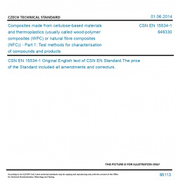 >CSN Standards>64 PLASTICS>6493 Composites and reinforcement fibres>CSN EN 15534-1 - Composites made from cellulose-based materials and thermoplastics (usually called wood-polymer composites (WPC) or natural fibre composites (NFC)) - Part 1: Test methods for characterisation of compounds and products