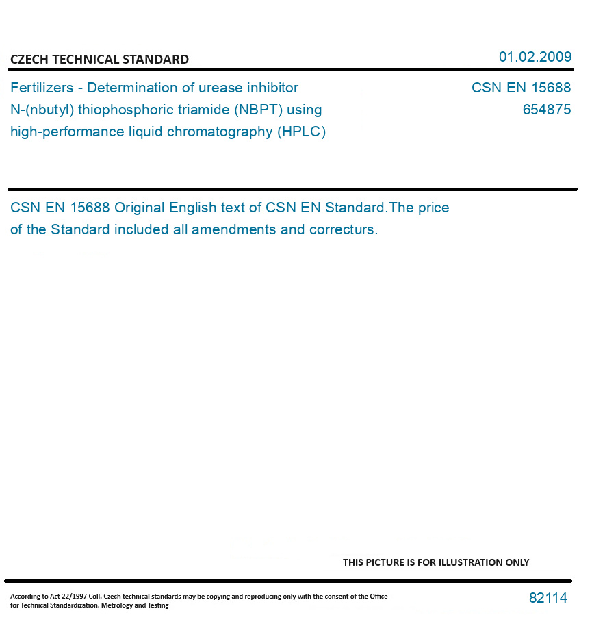 Fertilizers - Determination of urease inhibitor N-(nbutyl) thiophosphoric triamide (NBPT) using high-performance liquid chromatography (HPLC)