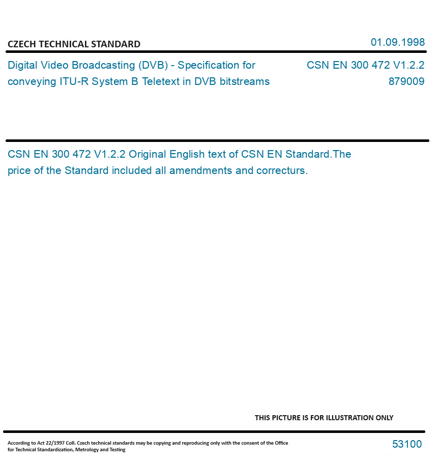 | Number of Standard: | CSN EN 300 472 V1.2.2 |