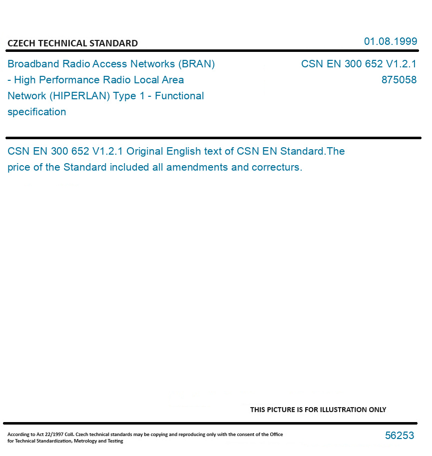 | Number of Standard: | CSN EN 300 652 V1.2.1 |