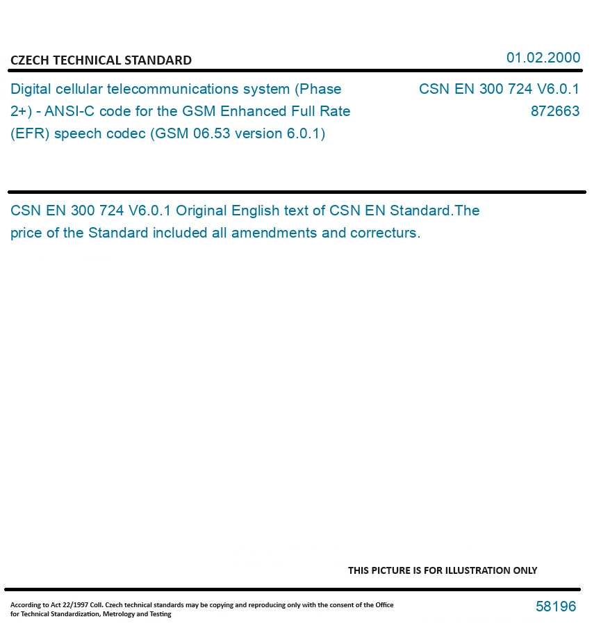 | Number of Standard: | CSN EN 300 724 V6.0.1 |