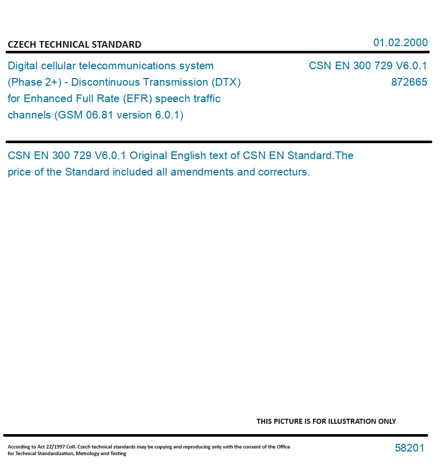 | Number of Standard: | CSN EN 300 729 V6.0.1 |