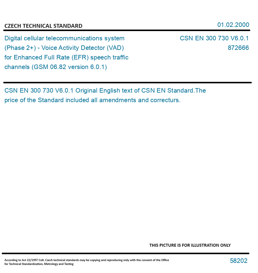 | Number of Standard: | CSN EN 300 730 V6.0.1 |