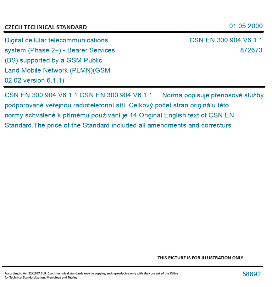 | Number of Standard: | CSN EN 300 904 V6.1.1 |