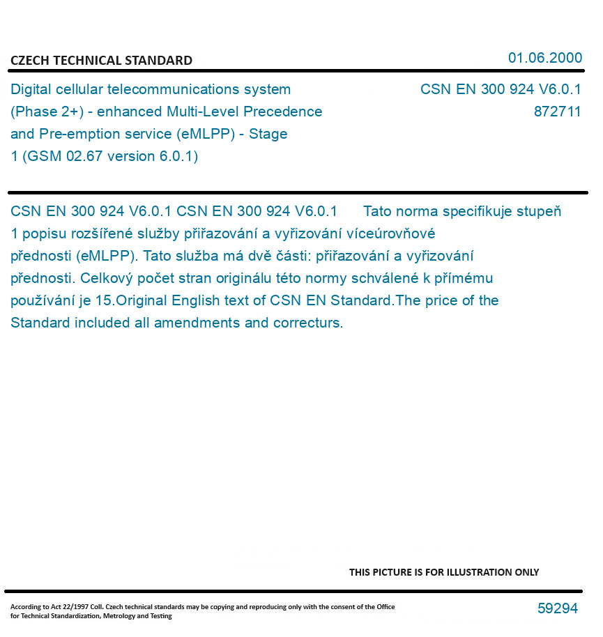 | Number of Standard: | CSN EN 300 924 V6.0.1 |