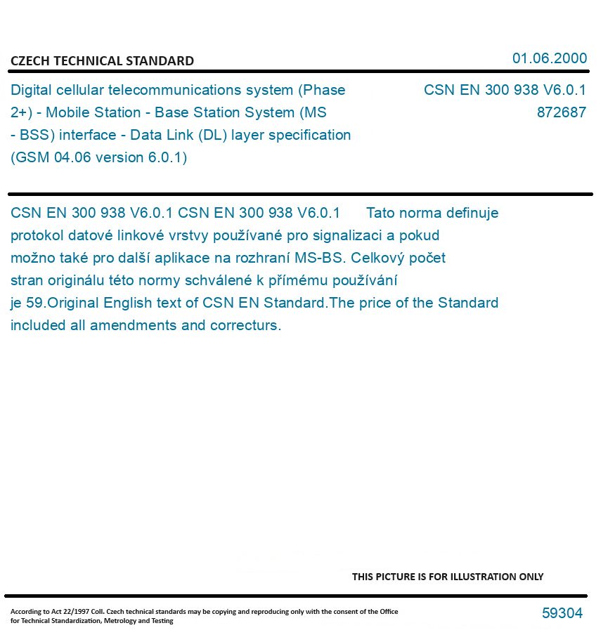 | Number of Standard: | CSN EN 300 938 V6.0.1 |