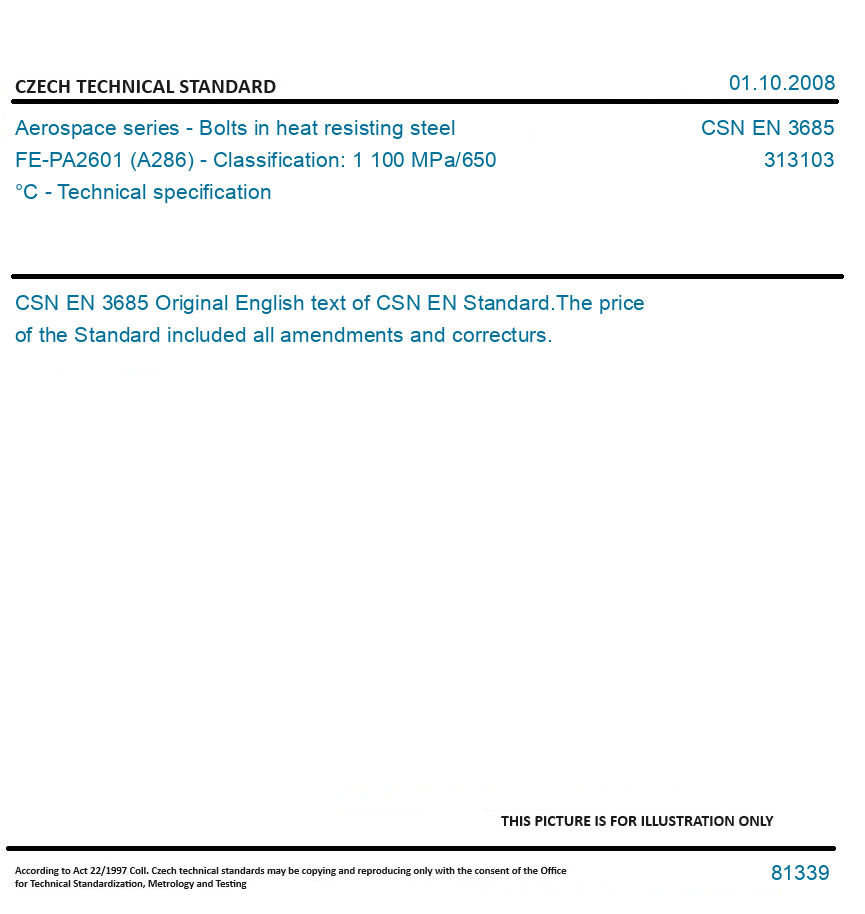 Aerospace series - Bolts in heat resisting steel FE-PA2601 (A286) - Classification: 1 100 MPa/650 °C - Technical specification