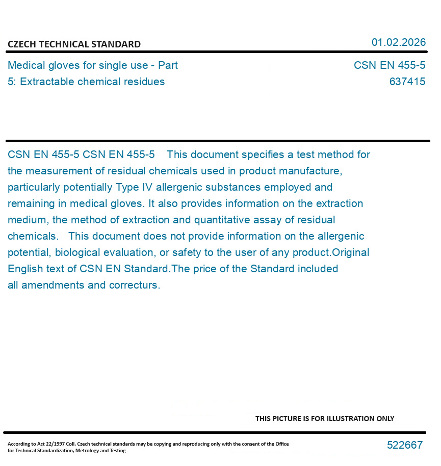 Medical gloves for single use - Part 5: Extractable chemical residues
