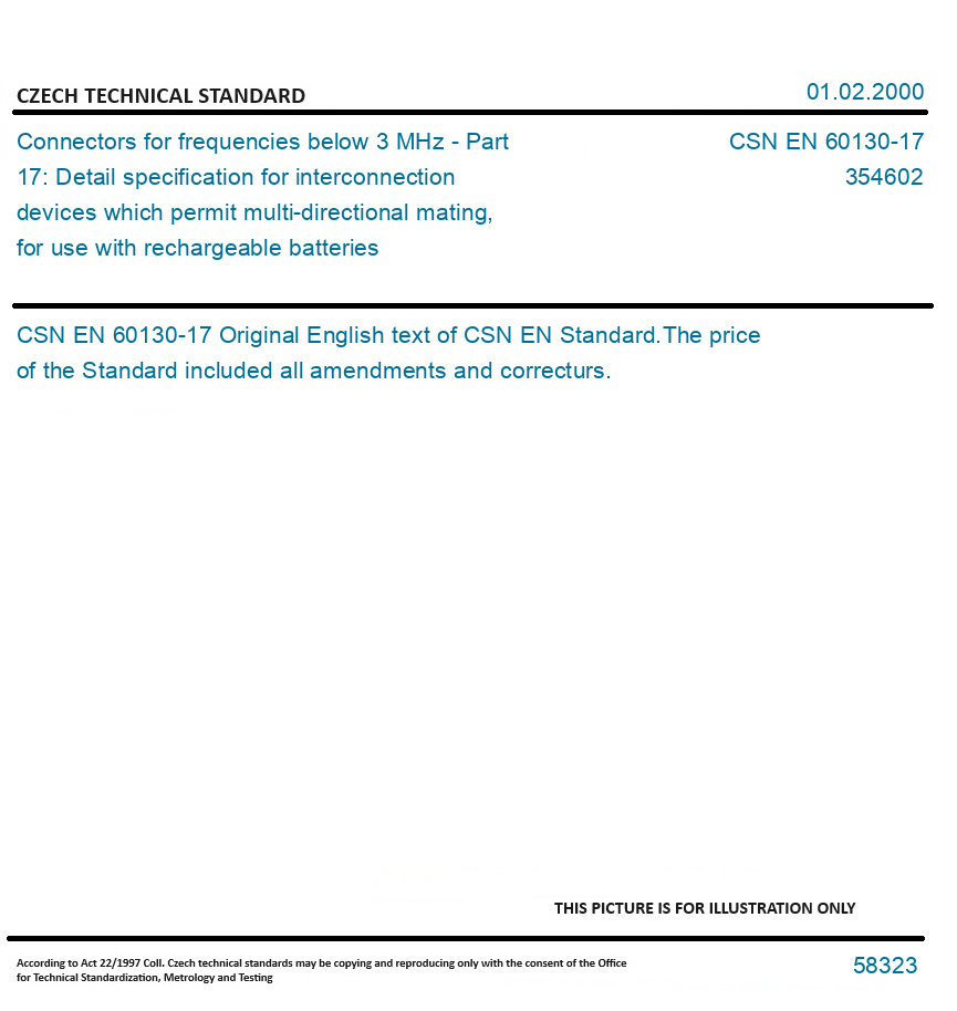 Number of Standard: CSN EN 60130-17 Category: 354602 Pages: 2 Released: 01.02.2000 Catalog number: 58323