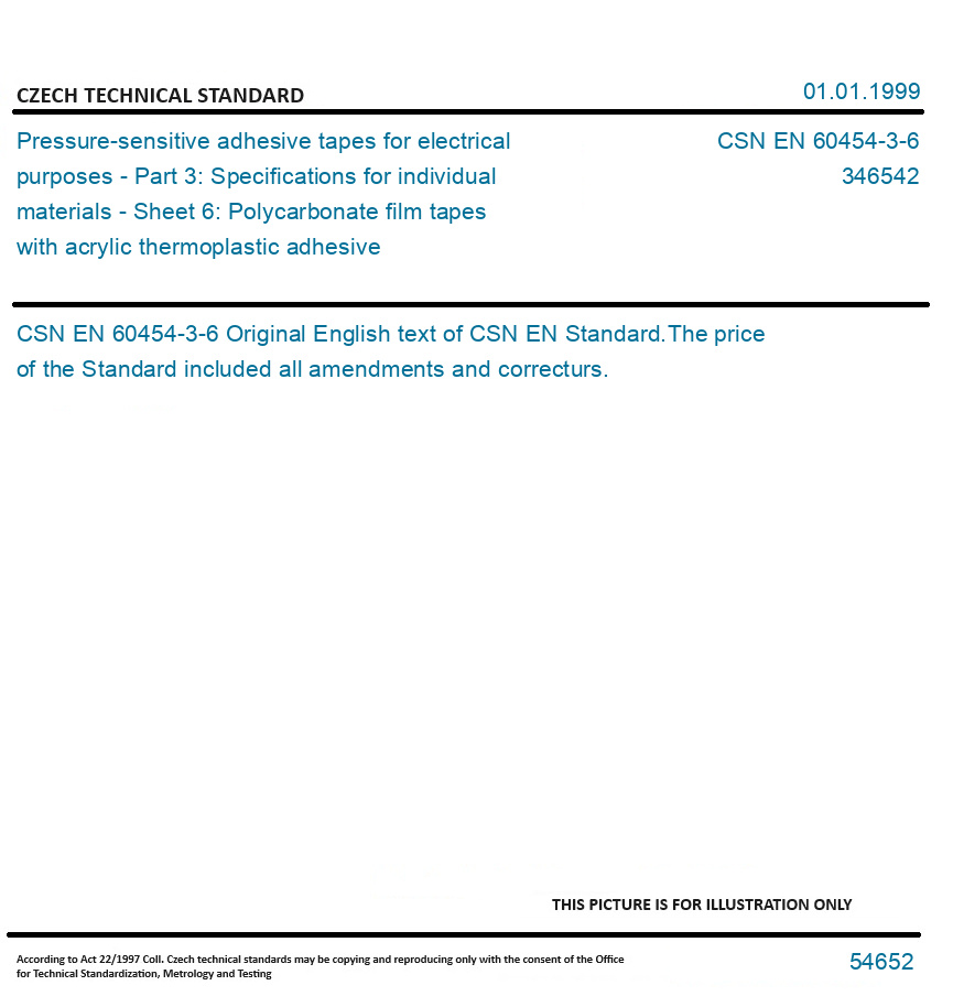 Pressure-sensitive adhesive tapes for electrical purposes - Part 3: Specifications for individual materials - Sheet 6: Polycarbonate film tapes with acrylic thermoplastic adhesive