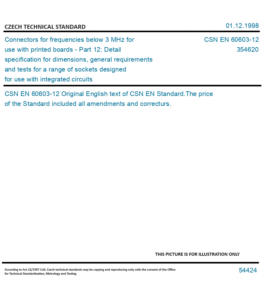 Connectors for frequencies below 3 MHz for use with printed boards - Part 12: Detail specification for dimensions, general requirements and tests for a range of sockets designed for use with integrated circuits