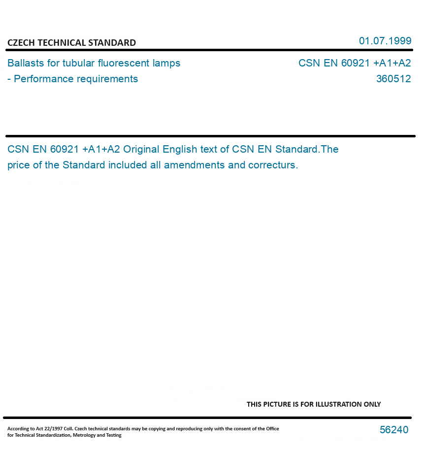 | Number of Standard: | CSN EN 60921 +A1+A2 |