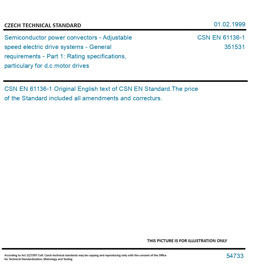 CSN EN 61136-1 Semiconductor power convectors - Adjustable speed electric drive systems - General requirements - Part 1: Rating specifications, particulary for d.c.motor drives