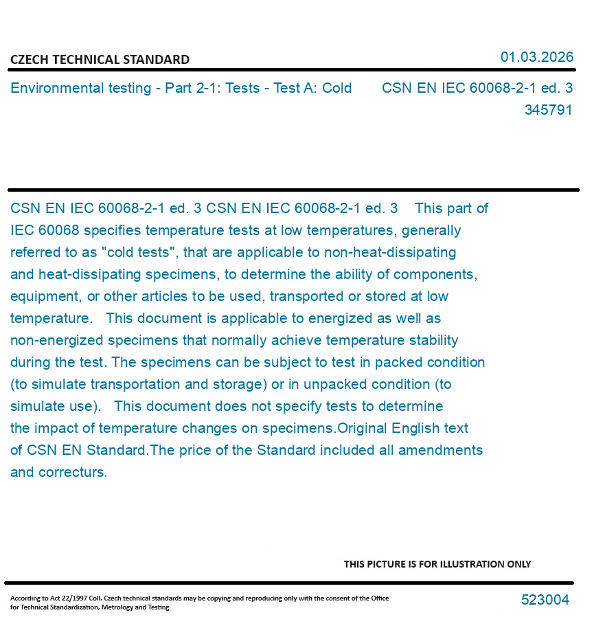 | Number of Standard: | CSN EN IEC 60068-2-1 ed. 3 |